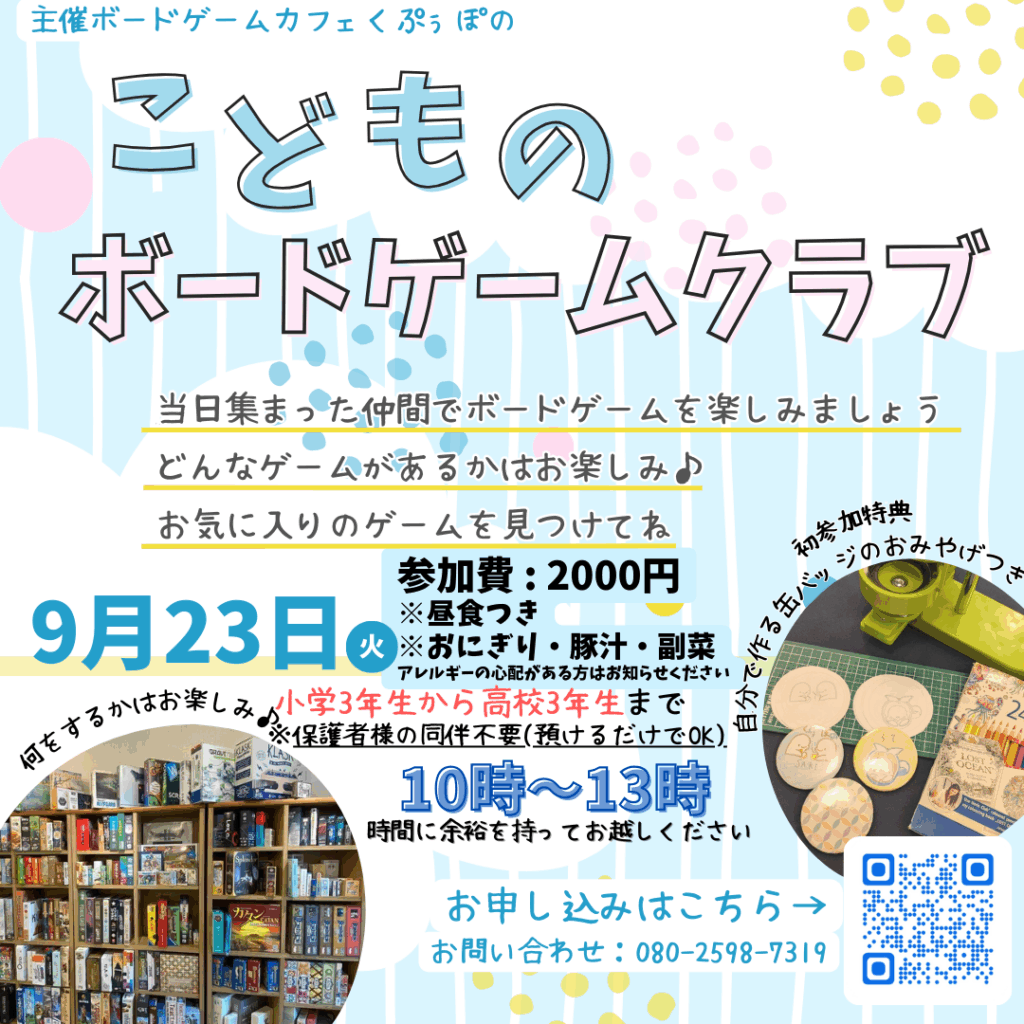 こんにちは!平塚のボードゲームカフェ「くぷぅぽの」です😊 毎月ご好評いただいている《こどものボードゲームクラブ》、次回は 9月23日(日) に開催します! 🎲 こどものボードゲームクラブって? 当日集まった仲間と一緒に、いろんなボードゲームを楽しむ... -
